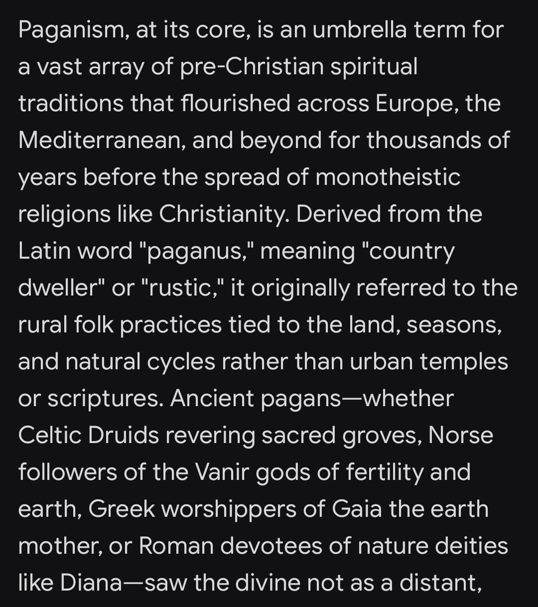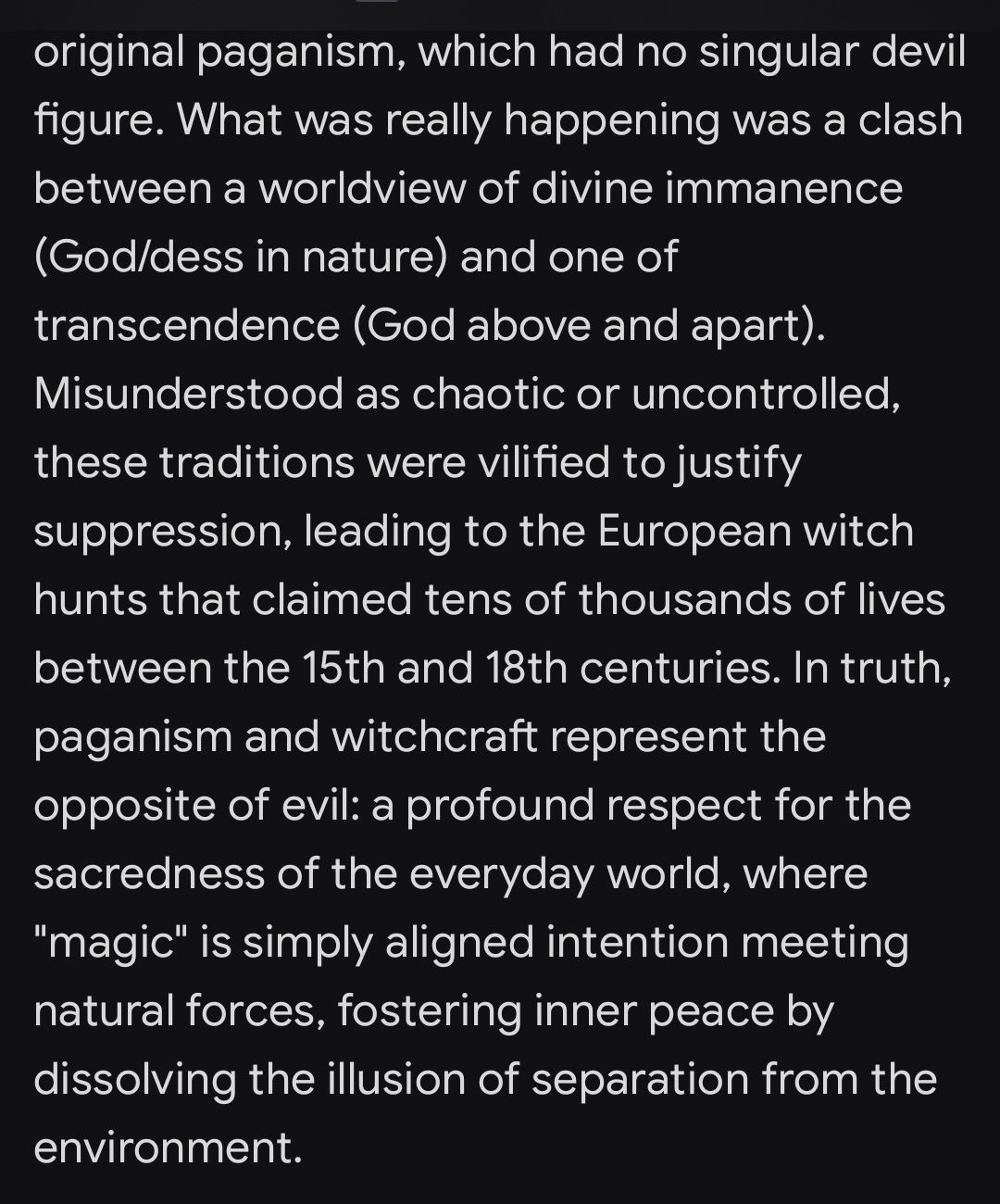 Paganism, witches and the like.